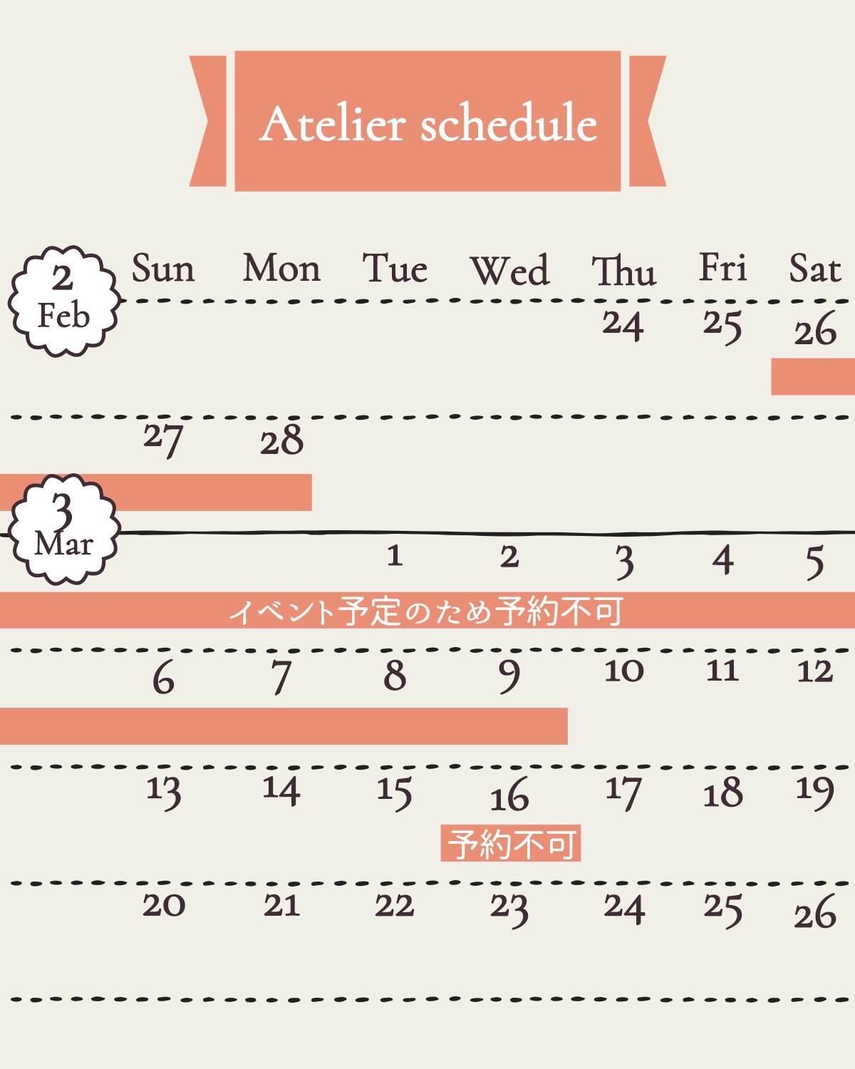 3月初旬は、兵庫県にてポップアップイベント開催の為、ご予約は致しかねますが、出来るだけ解放しますので、